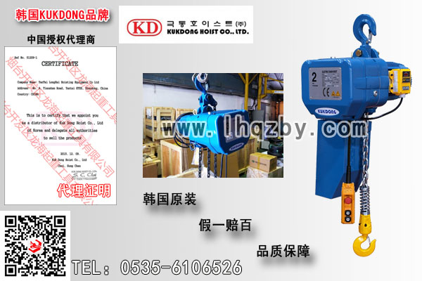 诚信经营:以质量求生存,以诚信求发展,KD-2电动葫芦均为韩国原装进口、授权代理(可提供代理证明);可到我公司实地考察、观看产品实物